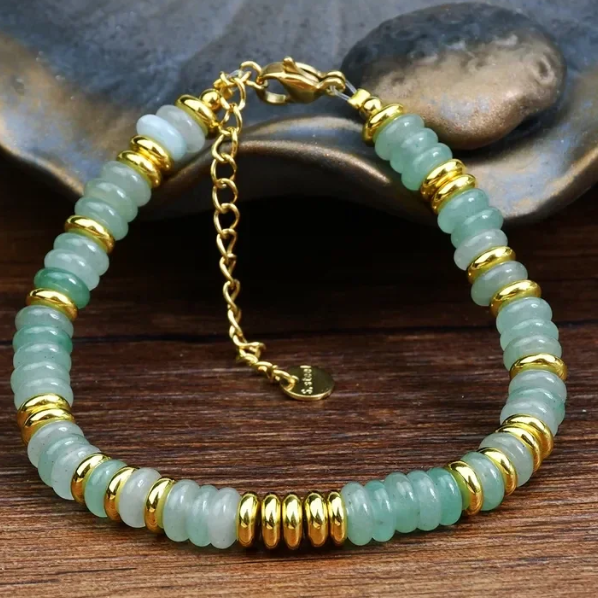 Hübsches Armband mit Gold-farbenen - und echten Aventurin-Perlen, Karabiner-Verschluss